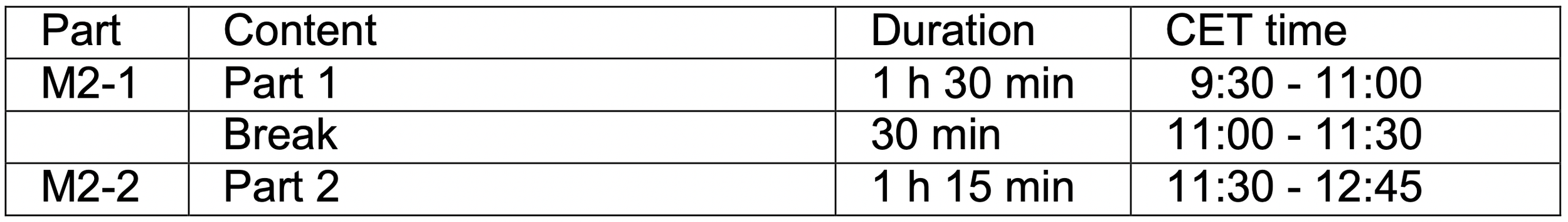Paper M2 is split into two parts. The first part is to be completed before the break, with the second part only becoming available after the break. It will not be possible to go back to the first part after the break.